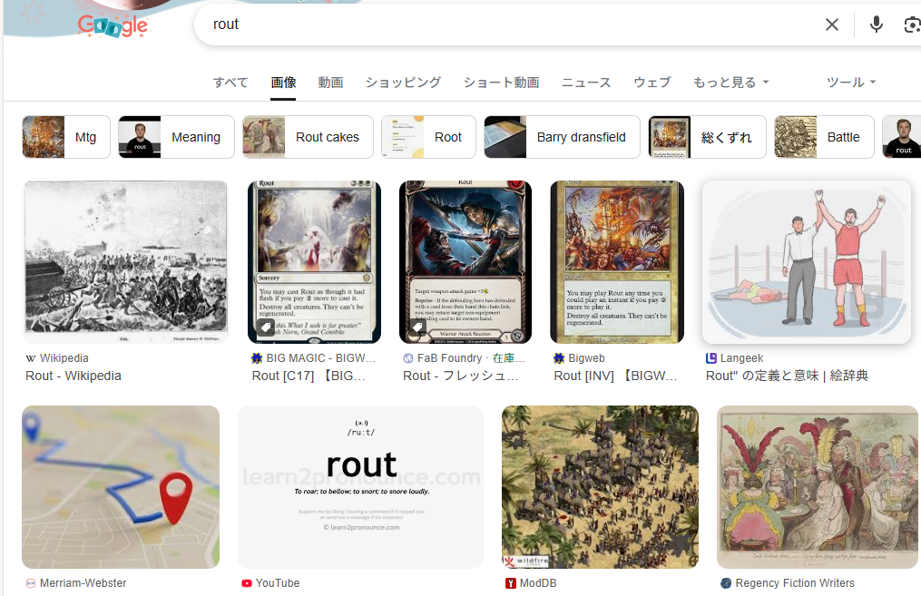 今回のroutの場合動詞の意味もあるので、そちらの意味や例文も当然確認します。