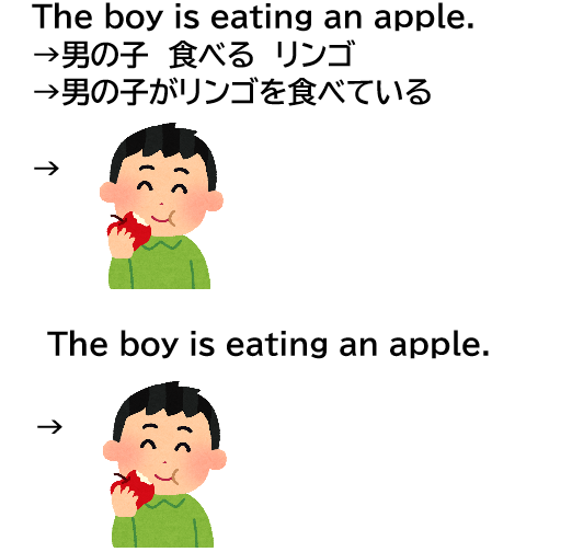 上の例は非常に簡単なので、大半の方が日本語に変換する必要なく情景が頭に描けたはずです。