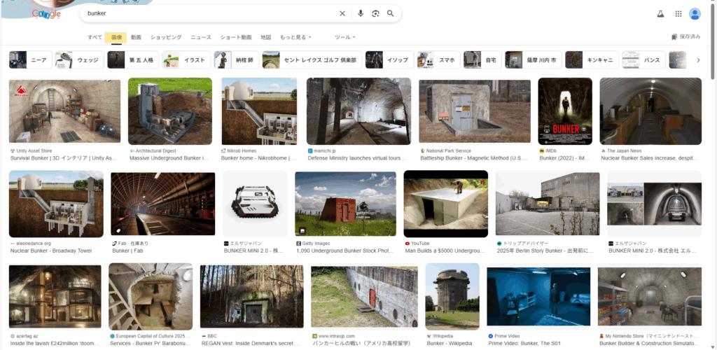 実際に、問題の選択肢3の”bunker”をgoogleで画像検索すると、以下のような画像が表示されます。