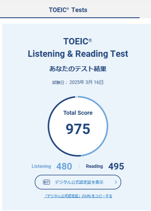二年ぶりに受験してきたTOEICの結果が先日発表されました。